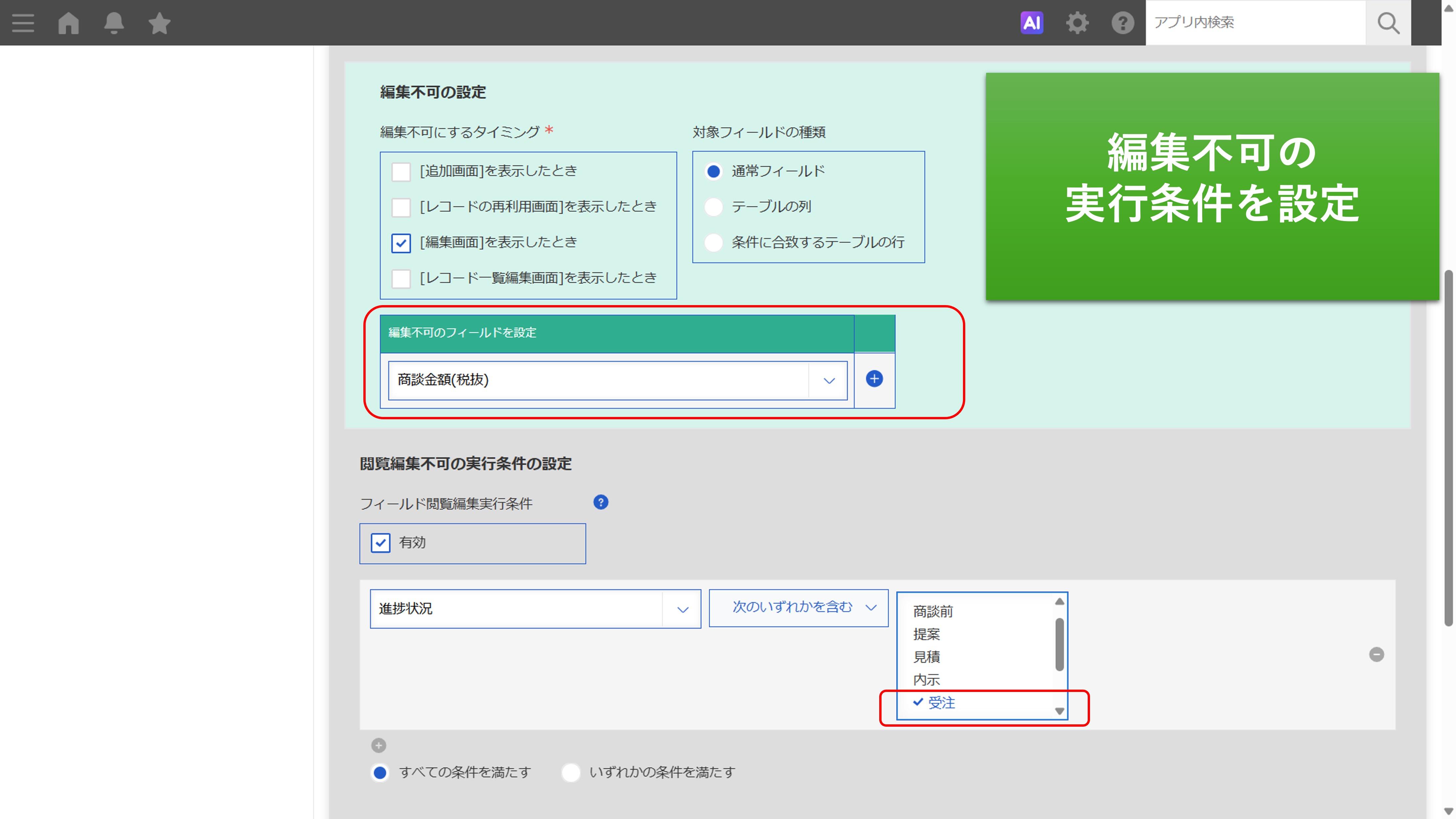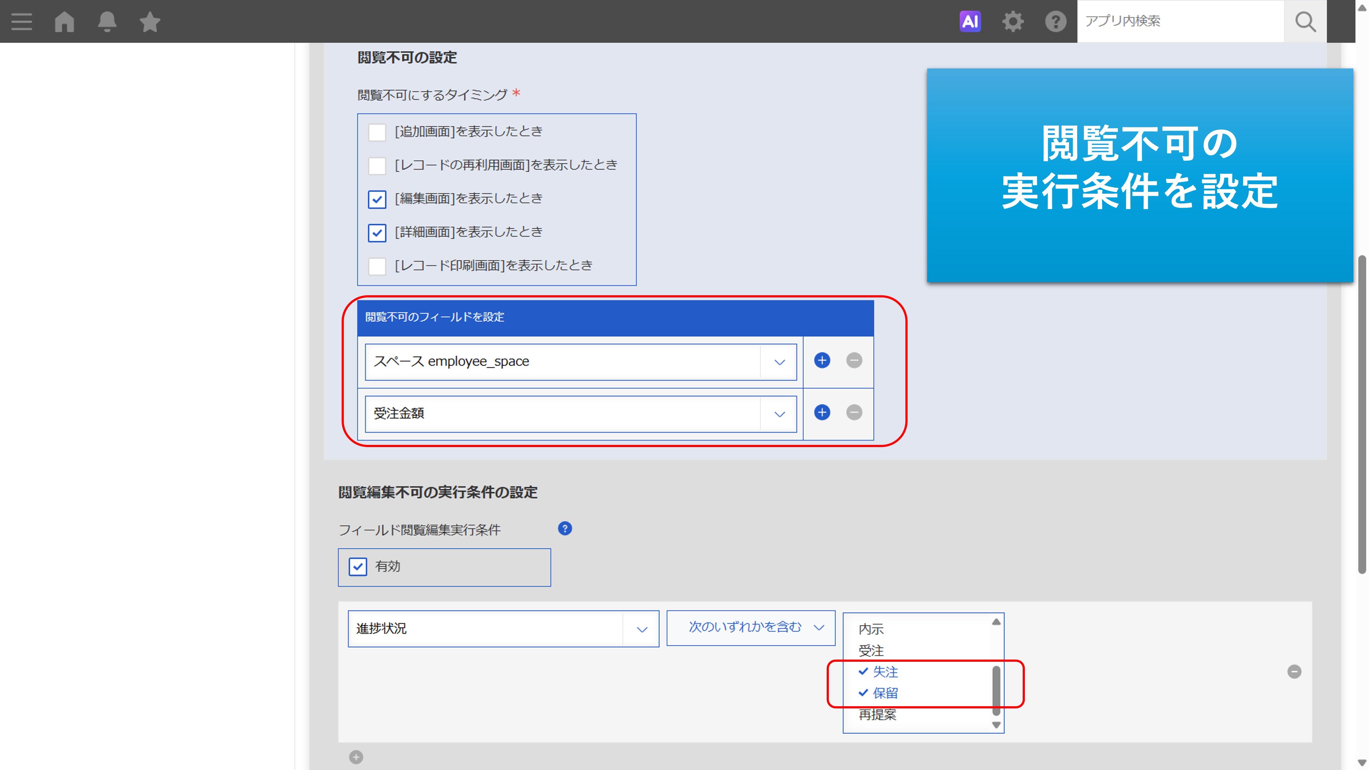 ○閲覧編集不可の実行条件の設定