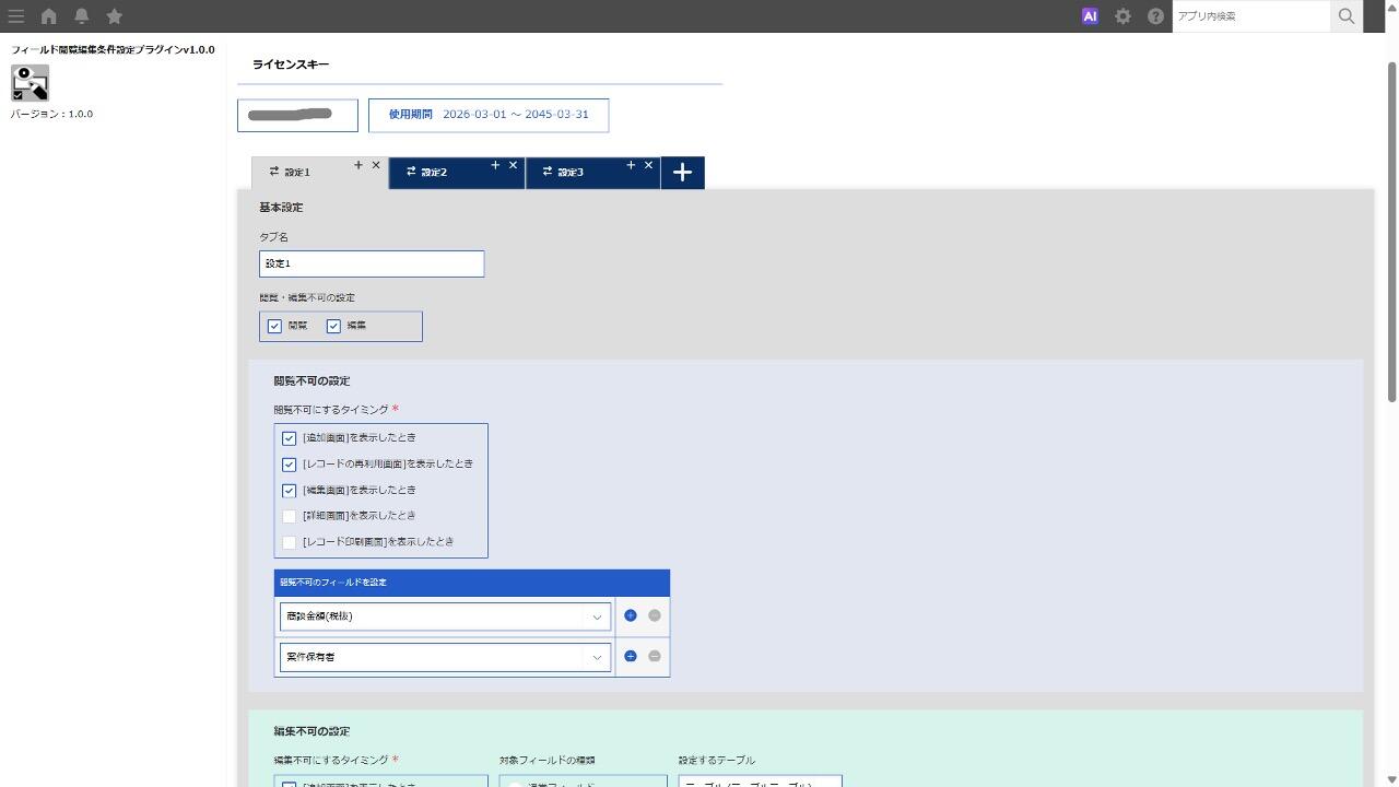 フィールド閲覧編集条件設定プラグイン
