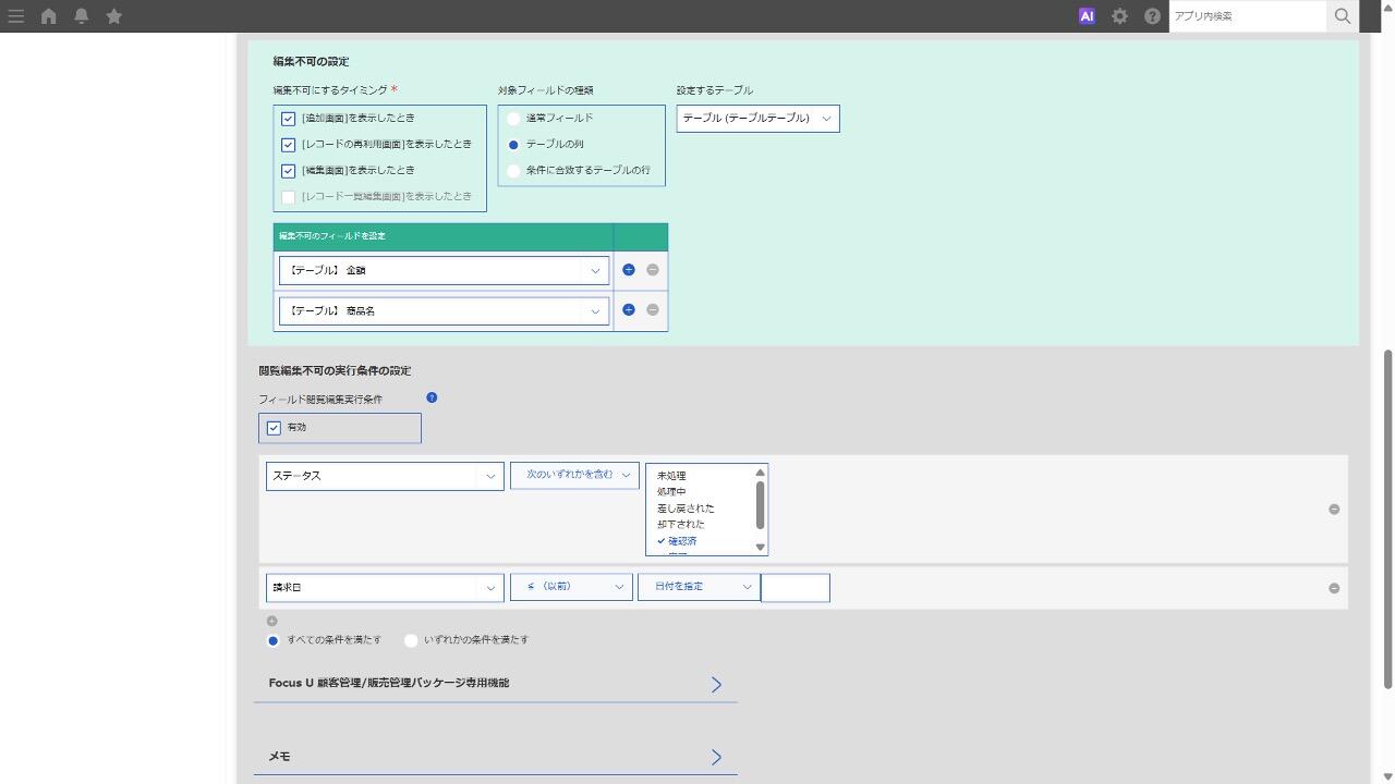 - 編集不可の対象は通常フィールドとテーブル内フィールドに対応