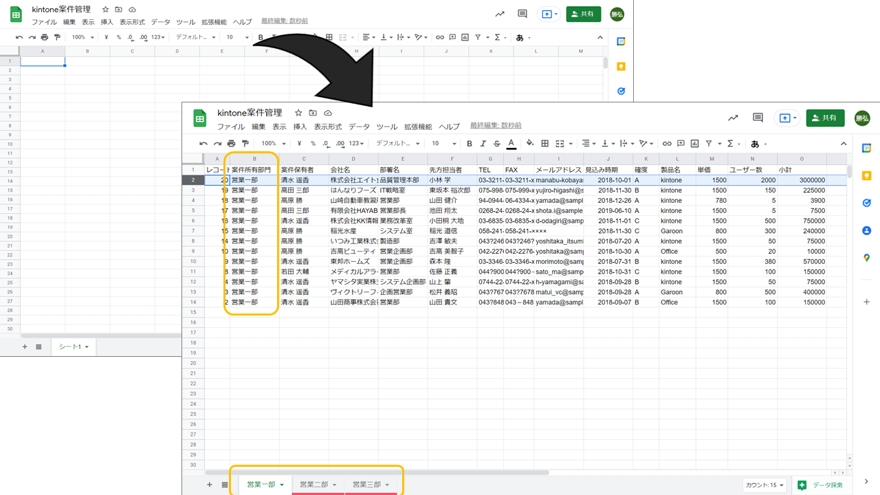 一部のデータだけを切り出して、スプレッドシート上で外部関係者と共有する使い方も可能です。